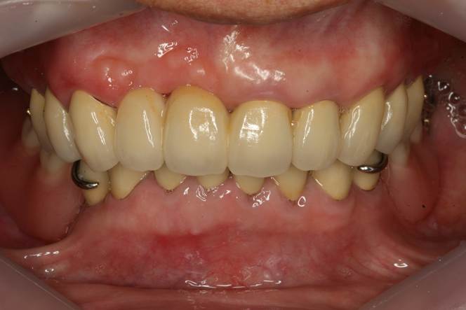 문제가 없음을 확인한 뒤에 전체 치아와 틀니를 제작하여 들어갑니다. 이 사진은 틀니를 제작한 것이고 틀니 대신 임플란트로 대체도 가능합니다.